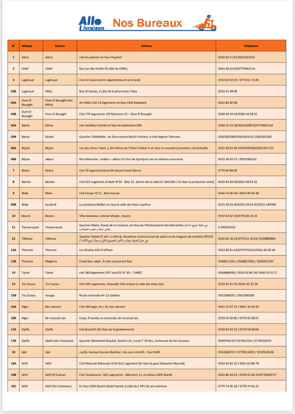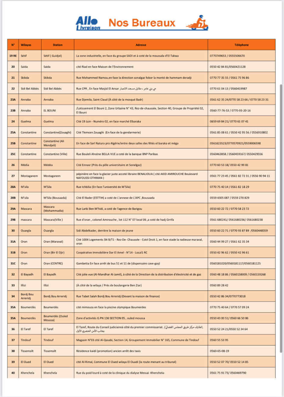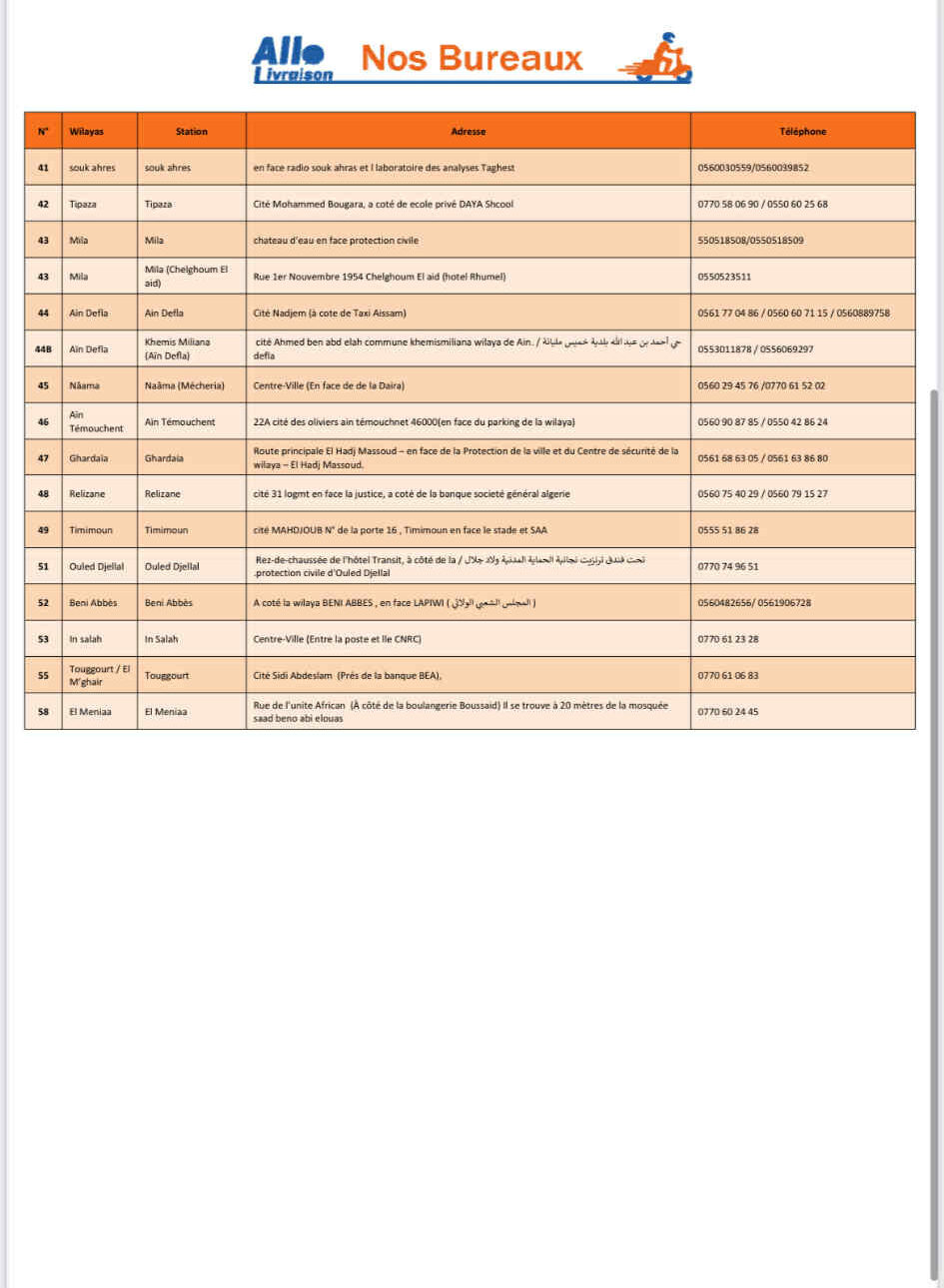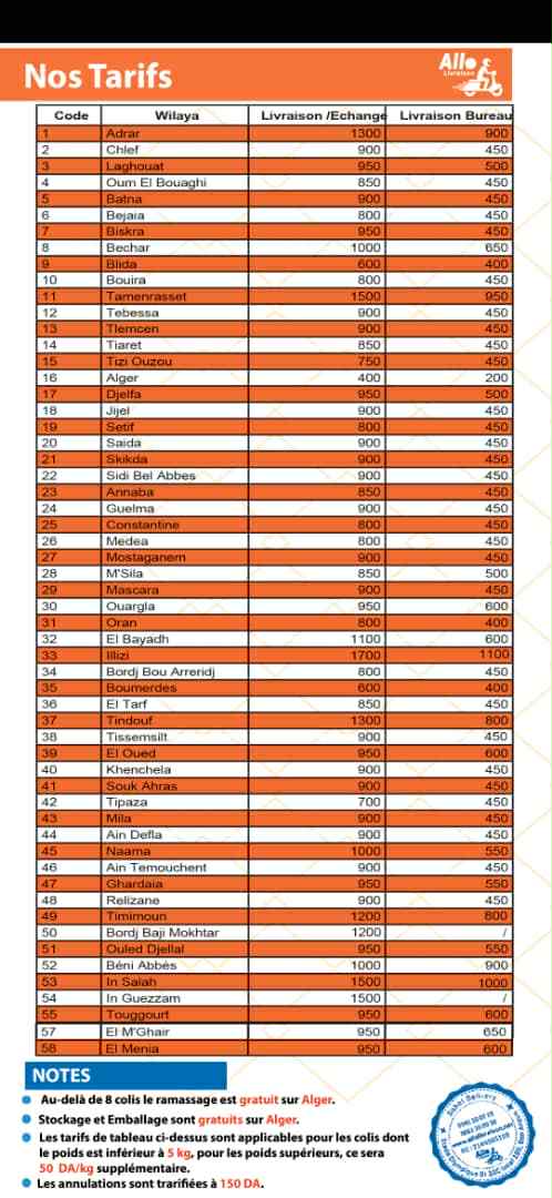 - La livraison dans la wilaya d’Alger est de 400 Da et 200 Da au bureau.